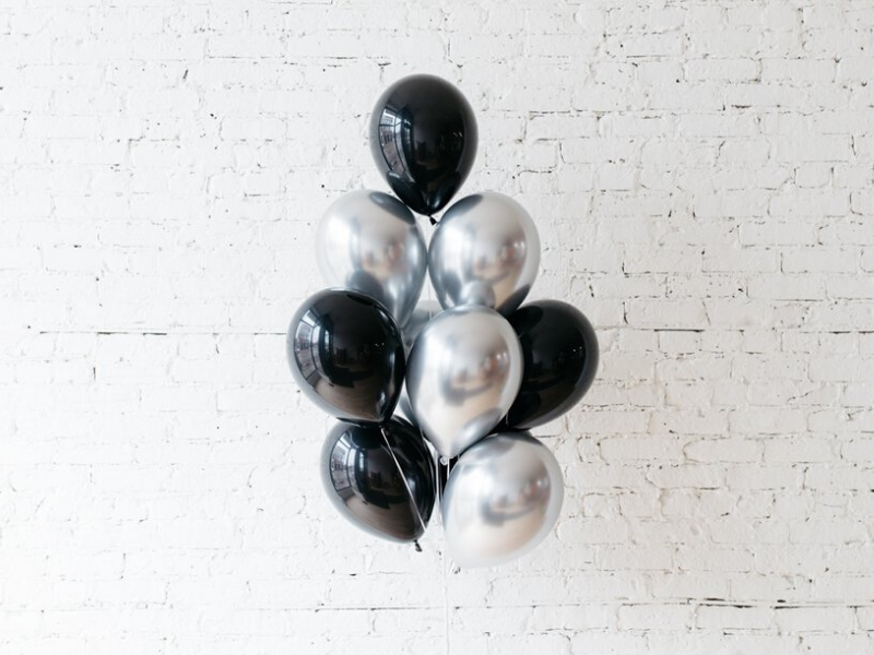 - 5 balonów czarnych i 5 balonów srebrnych chrome na srebrnych wstążkach