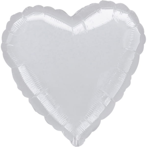 Balon w kształcie serca w kolorze srebrnym metallic, rozmiar 43 centymetry.