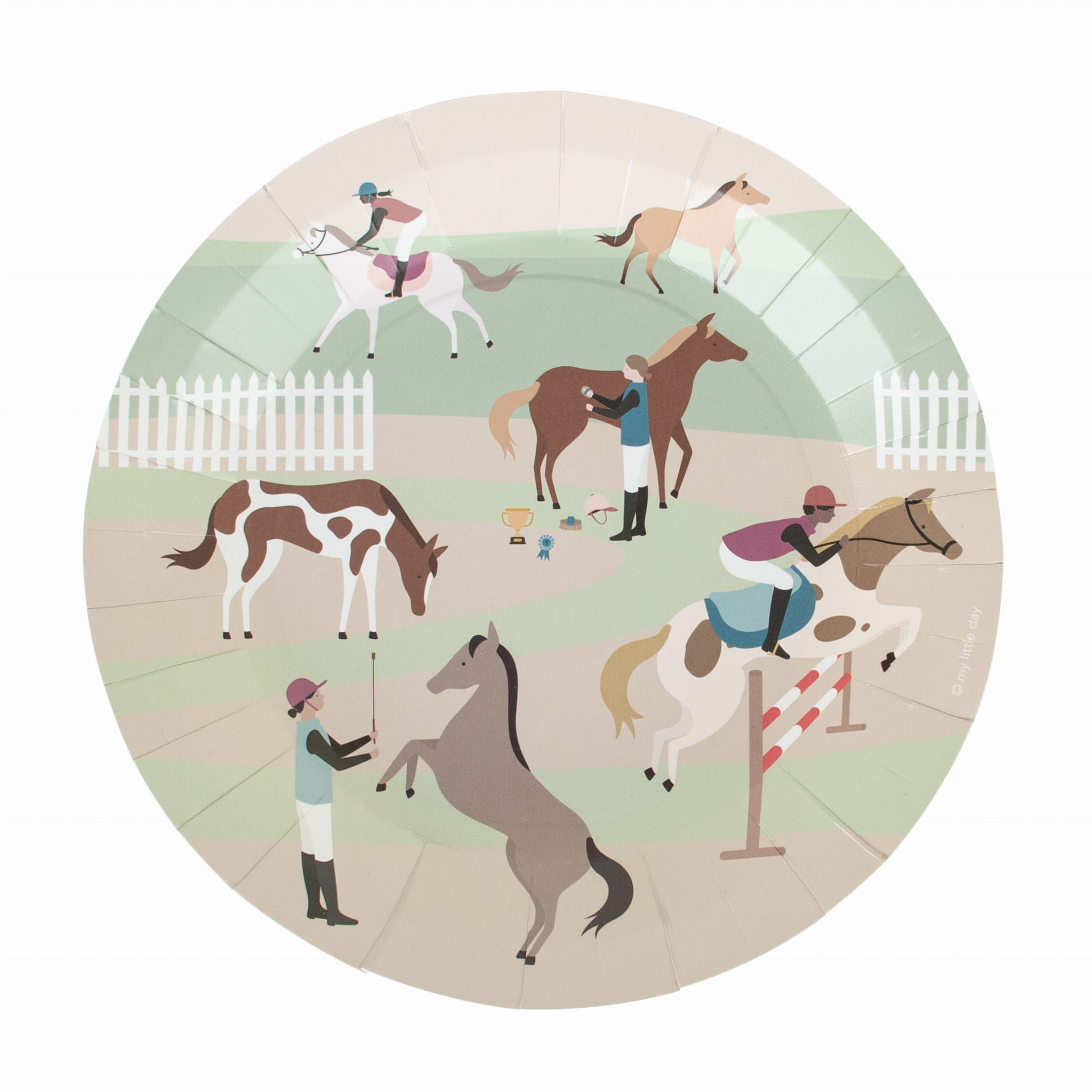 Papierowe talerzyki jednorazowe, wzór konie, średnica 22 centymetry. Pakowanie: 1 opakowanie zawiera 8 sztuk.