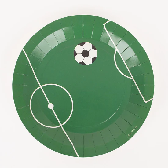 Papierowe talerzyki jednorazowe, wzór piłka nożna, średnica 23 centymetry. Pakowanie: 1 opakowanie zawiera 8 sztuk.