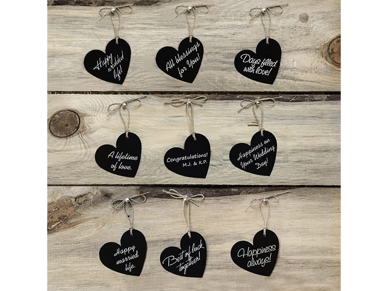 Zawieszki Serca z papieru w kolorze czarnym z lnianym sznureczkiem, wymiary 5x4,5 centymetra. Pakowanie: 1 opakowanie zawiera 10 sztuk.